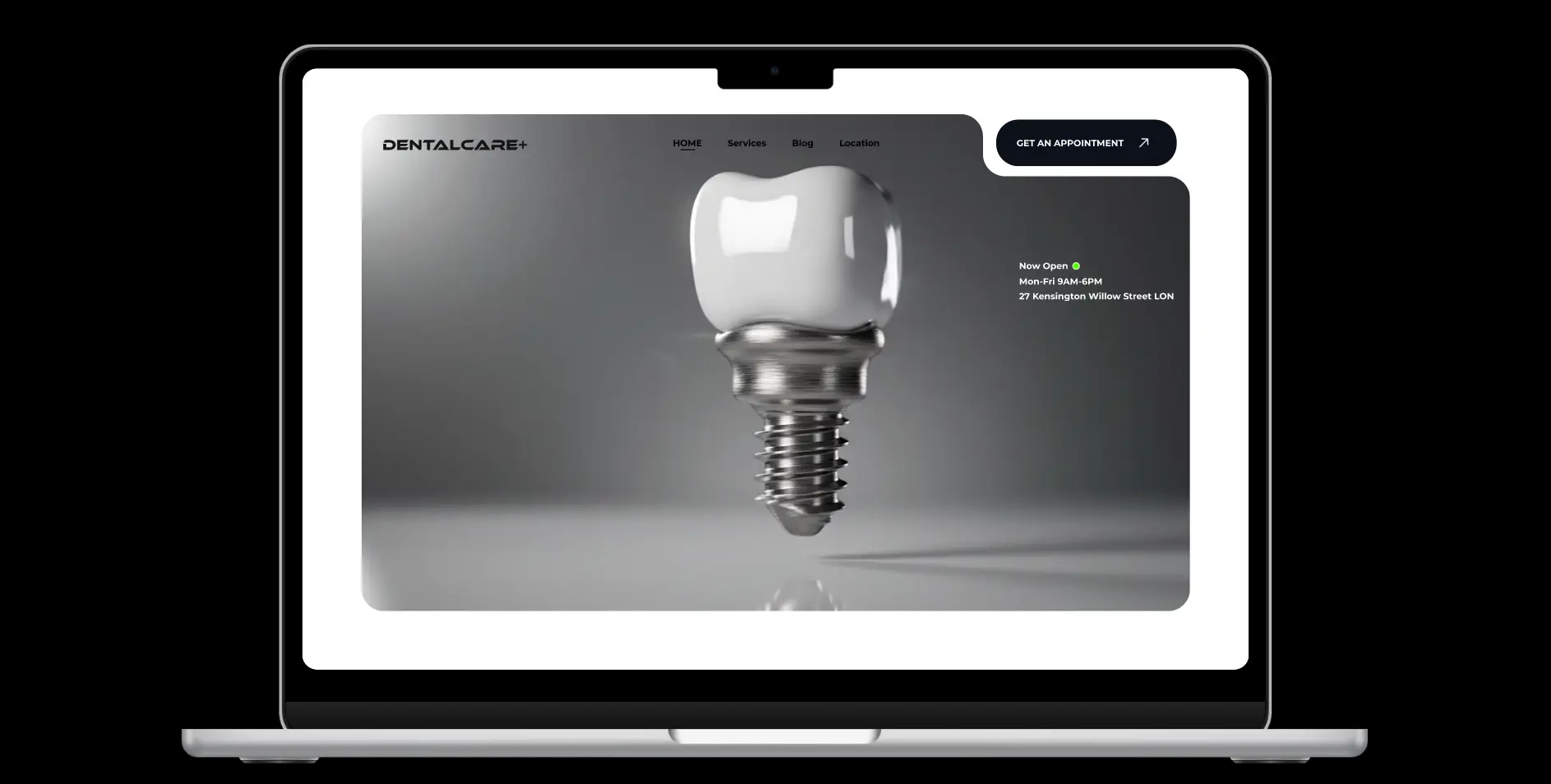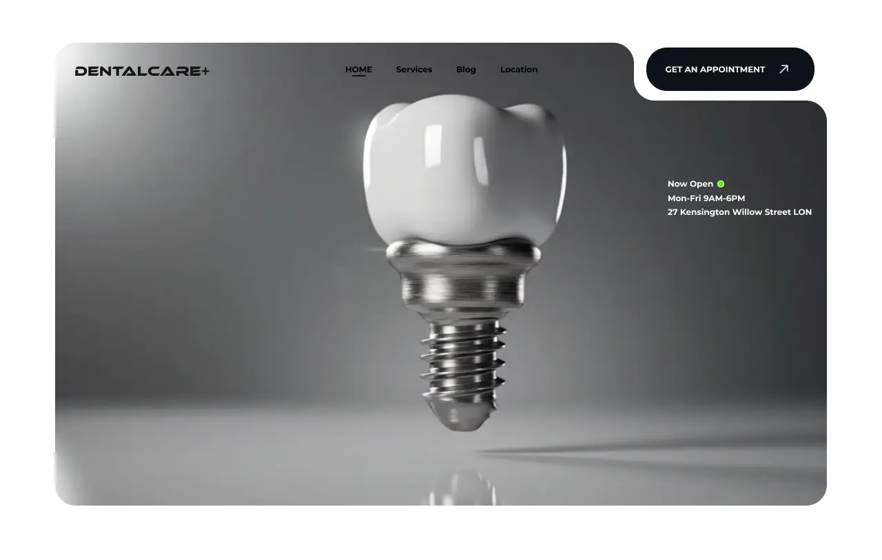 Clean, sterile, and patient-centric design for a modern dentistry. Built to reduce anxiety and increase appointment scheduling efficiency.