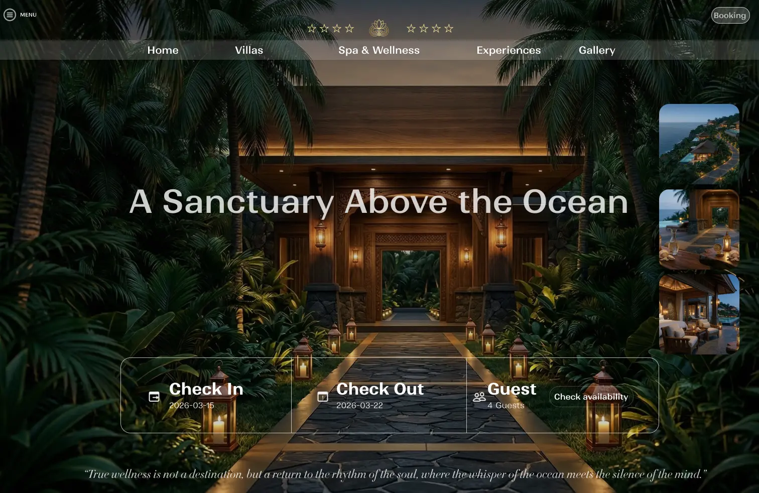 Immersive web experience for a luxury resort. We focused on sensory UI/UX that mimics the relaxation of a physical spa visit.